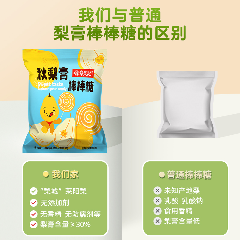 章吴记秋梨膏棒棒糖儿童解馋奖励宝宝水果味棒棒糖幼儿官方旗舰店