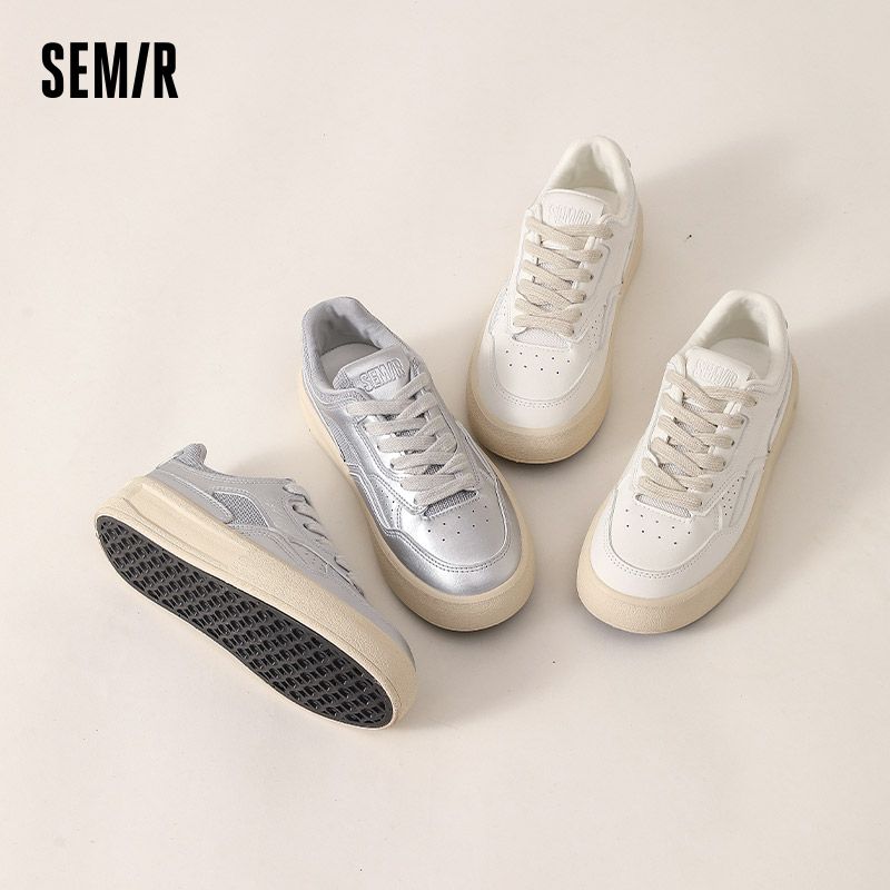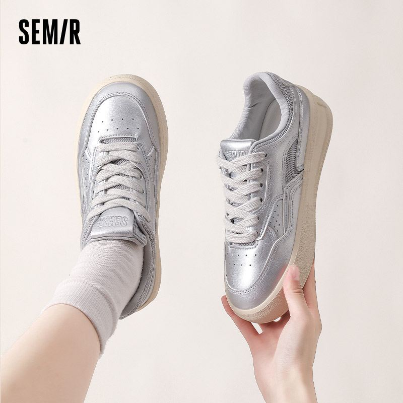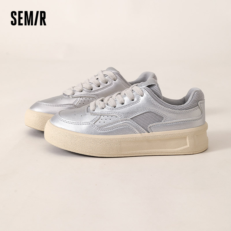 Semir女鞋板鞋2025春秋季新款ins潮流银色拼接厚底增高休闲板鞋