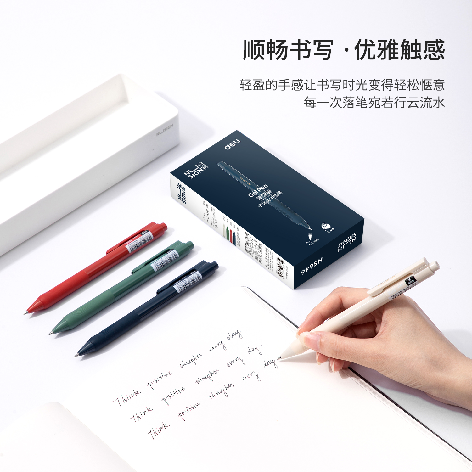 得力纽赛按动中性笔高颜值笔臻顺滑子弹头0.5mm黑 按摩护套 NS646