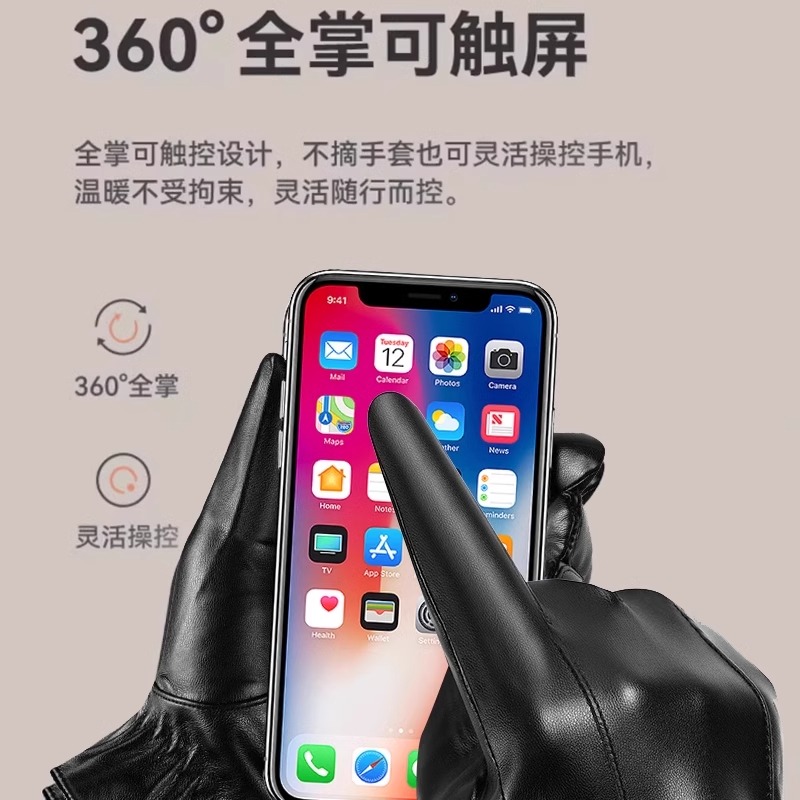 皮手套骑行男士冬加绒加厚骑车防风防水保暖触屏摩托车棉冬季手套
