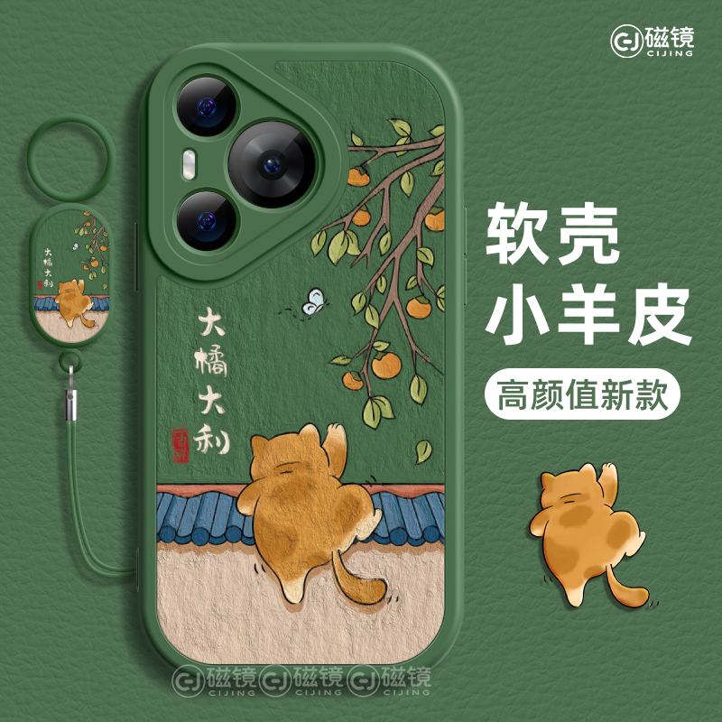 适用华为NOVA14手机壳Pura80新款小羊皮mate70诸事皆顺P60art液态pro硅胶plus熊猫50软13男ultra12女40保护套