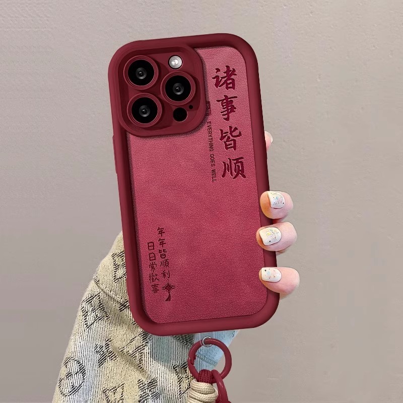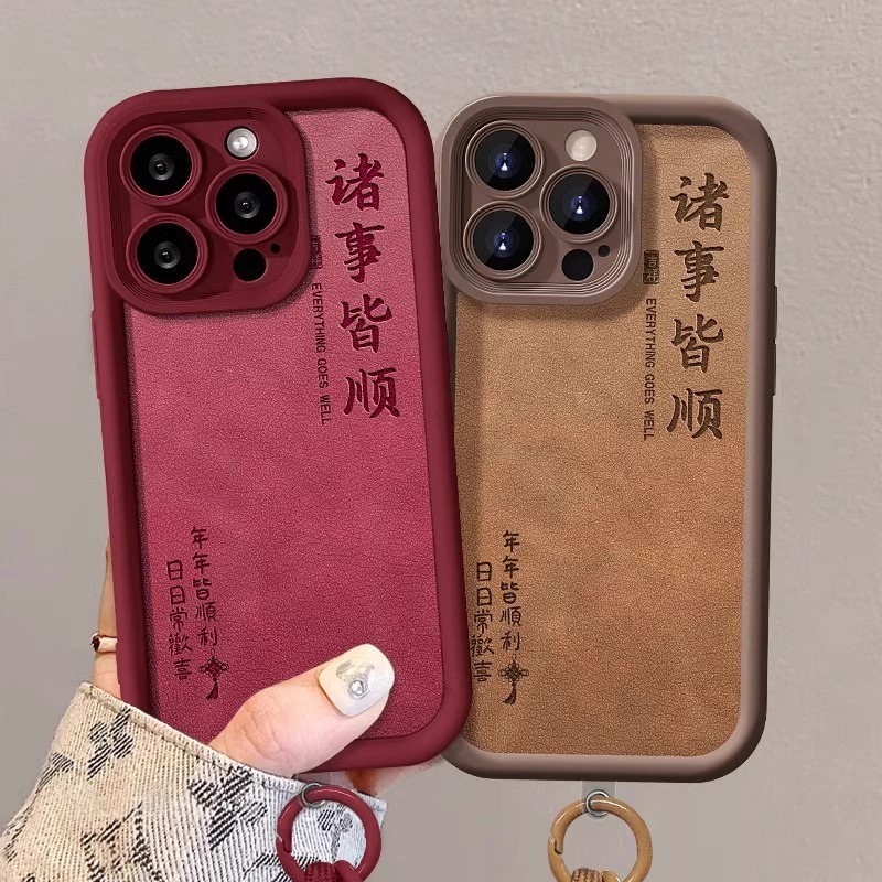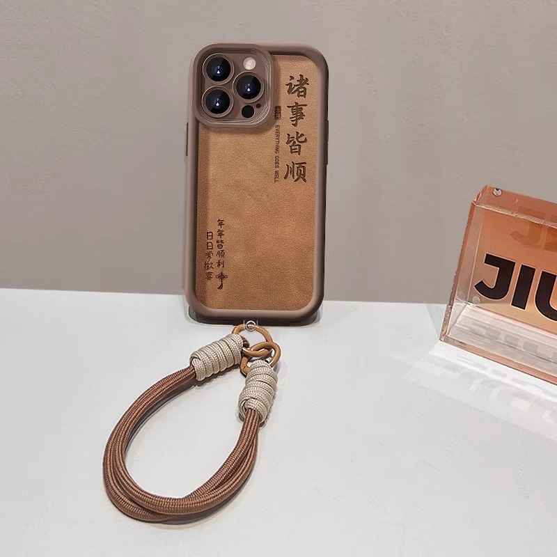 年年皆顺利适用苹果17promax手机壳iPhone16promax保护套复古15/14p咖色小羊皮13温柔11腕带挂绳12秋冬防摔女