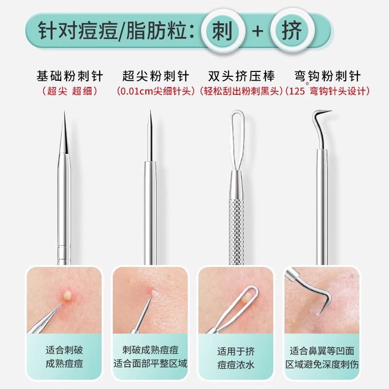 健美创研超细粉刺针套装细胞夹去黑头镊子刮闭口挑挤痘祛痘针工具