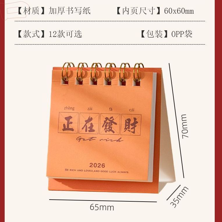 2026 小日历国风款祝福文字迷你便携随身带桌面打卡计划摆件