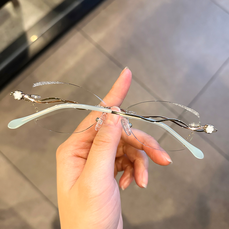 钻石切边无框近视眼镜女素颜神器大脸显瘦可配有度数光学眼睛架男