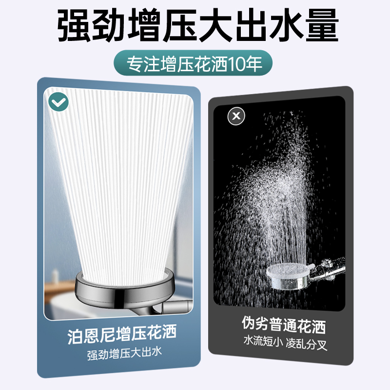 增压花洒喷头超强淋浴头浴室家用加压浴霸热水器洗澡沐浴花晒套装
