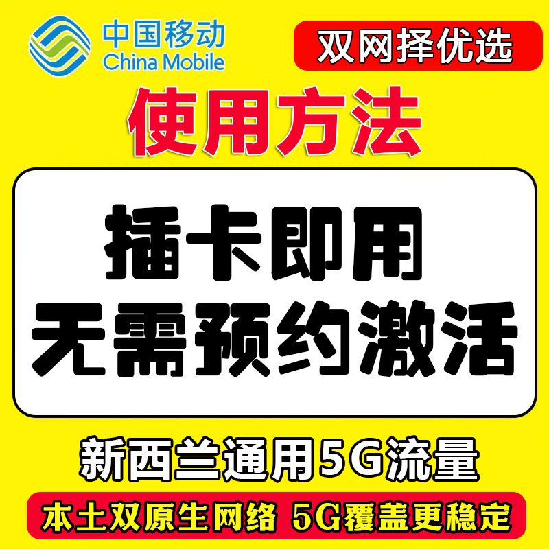 新西兰上网卡4G5G手机流量热点1-30天全新西兰通用旅游电话卡