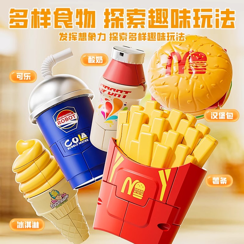 儿童食物趣味变形机器人玩具金刚薯条汉堡可乐模型益智男女孩玩具