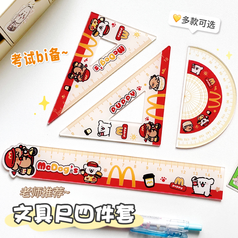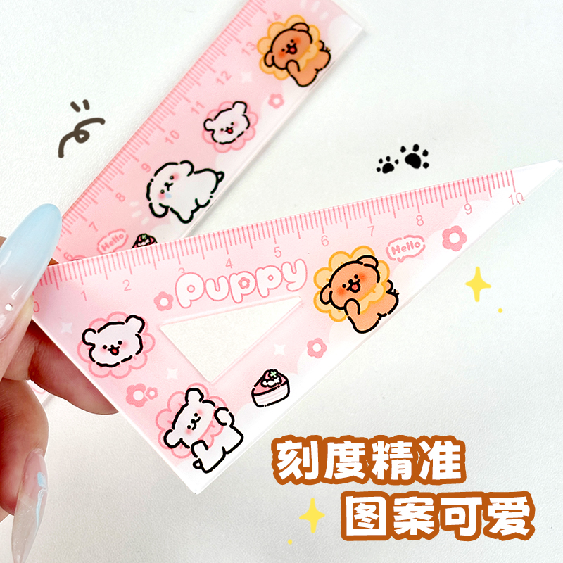 卡通线条狗系列套尺四件套学生文具套装学习用品尺子三角板量角器