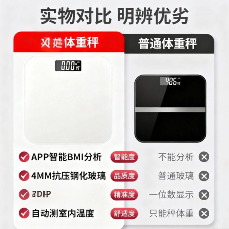 苏泊尔体重秤体脂秤家用精准充电子秤减肥专用人体秤标准称体重