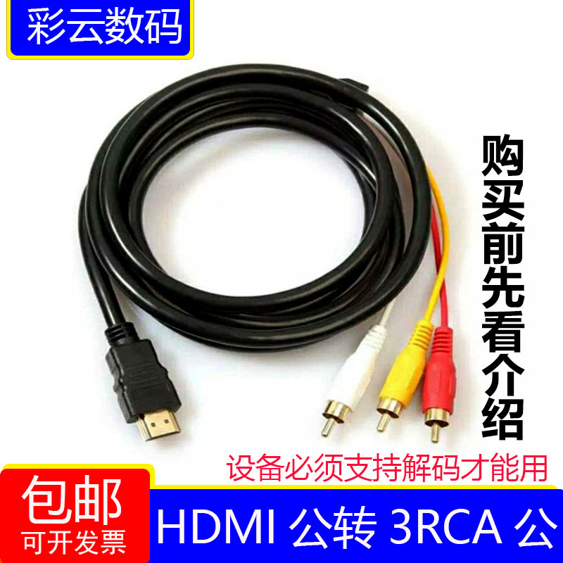 HDMI转AV线莲花3RCA红白黄电脑机顶盒接老电视机视频高清转三色线