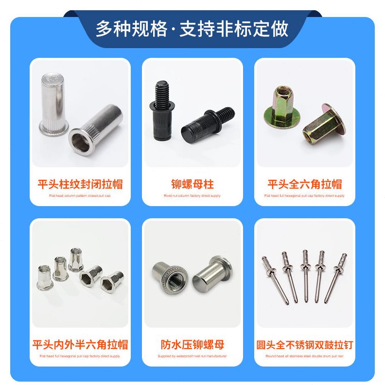 高拉铆螺母花圆柱滚头平通拉铆螺母m6强帽小度光身孔沉头拉m8