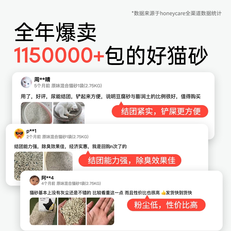 honeycare猫砂混合豆腐砂除臭膨润土天生官方旗舰店小颗粒经济