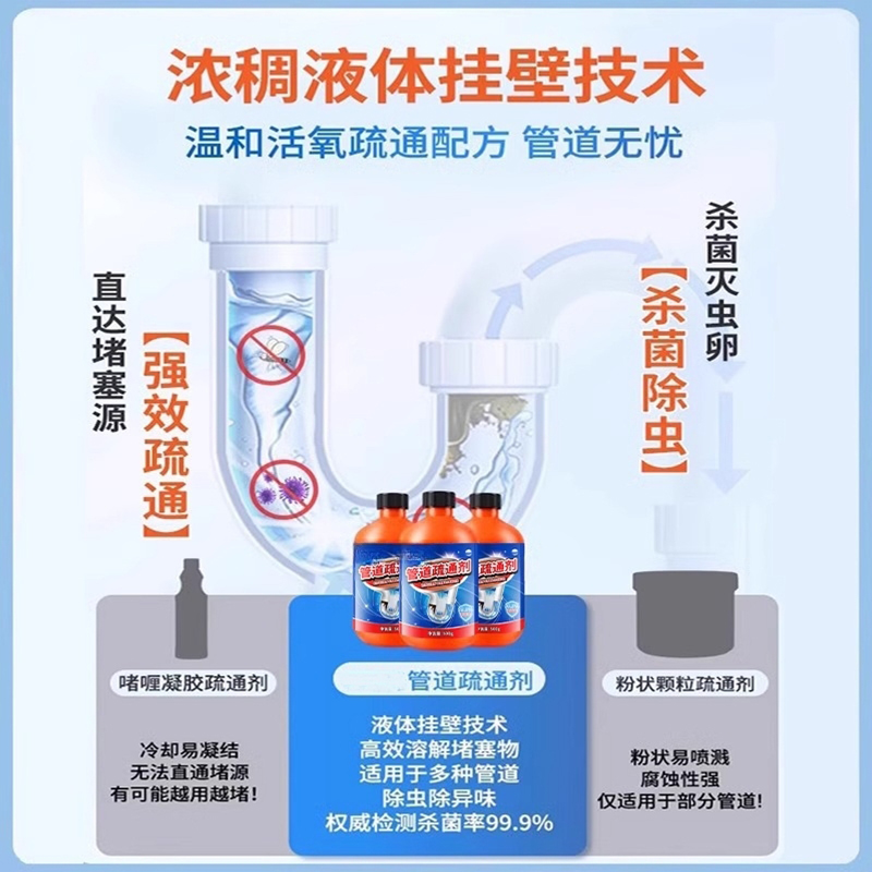 管道疏通剂强力溶解小飞虫厨房浴室马桶除臭油污通下水道神器水管