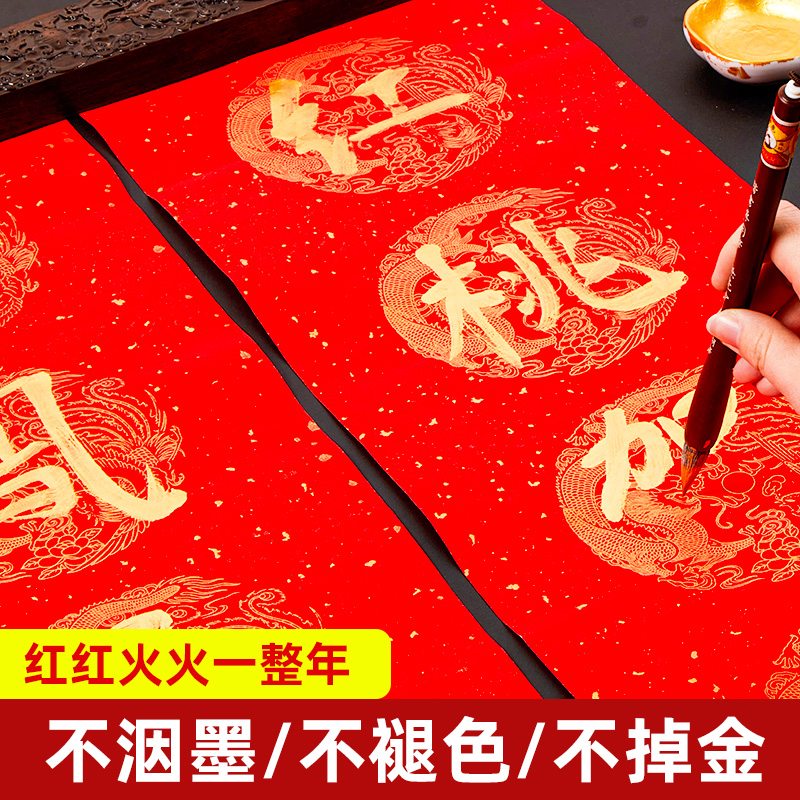 2026马年万年红对联纸洒金红纸手写空白过年新款春联专用批发宣纸龙凤书法五言七言自写春节专用新年大红斗方