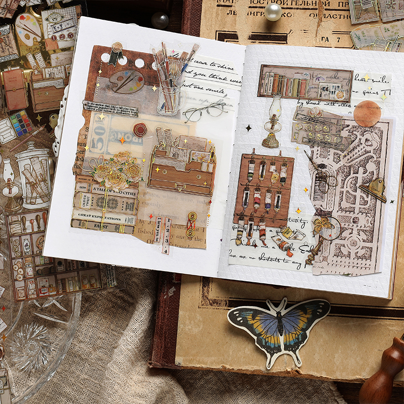 山月为枕PET立体烫金复古贴纸手帐diy清新文艺欧式素材装饰拼贴画