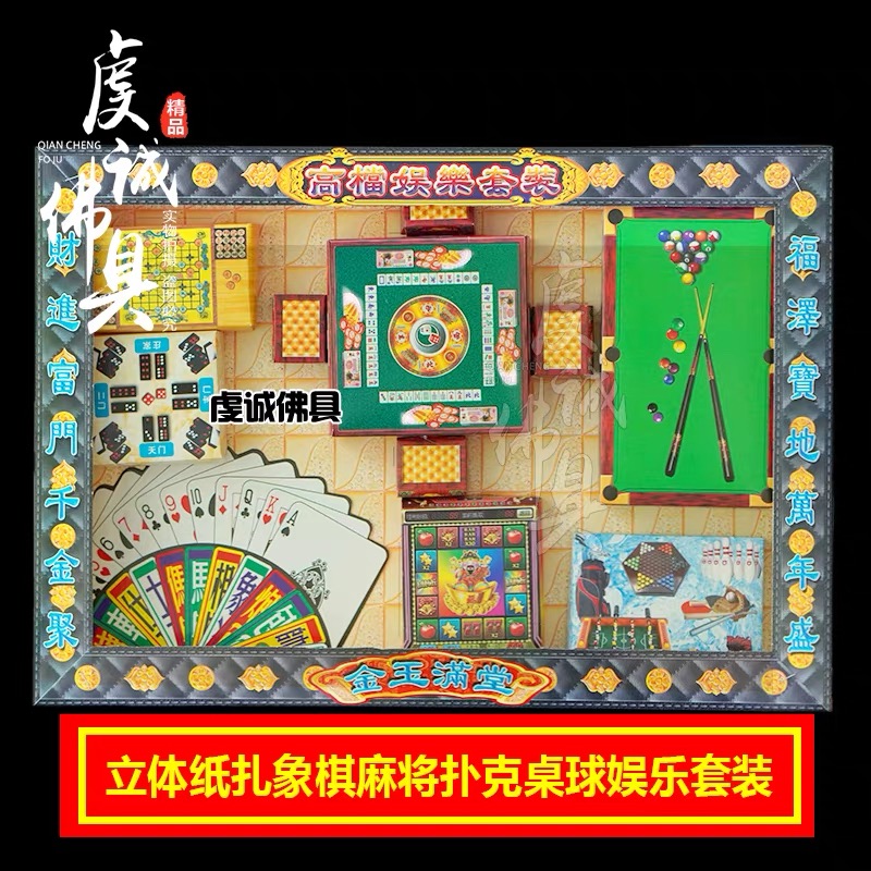 祭祀纸扎桌球扑克象棋纸货用品大全七月半中元节纸钱烧纸娱乐用品