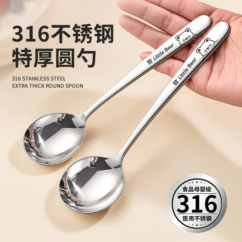 316不锈钢勺子家用食品级长柄加深汤匙个人专用汤勺调羹儿童勺子