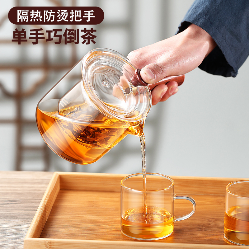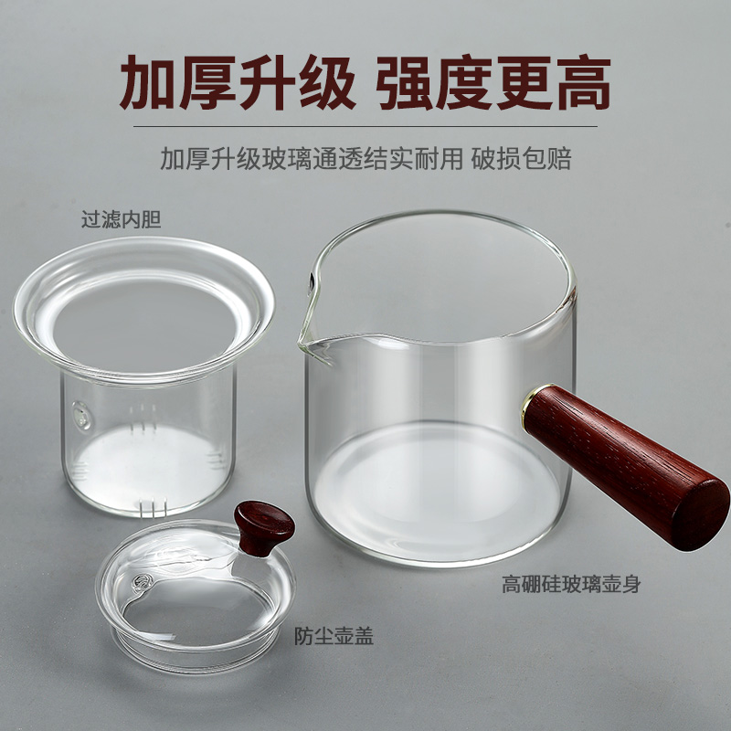 侧把茶壶玻璃泡茶壶电陶炉煮茶器耐高温加厚木把功夫茶具套装加热