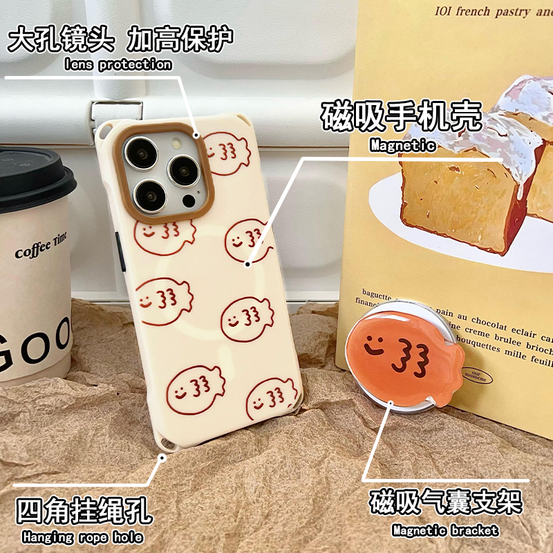 鲷鱼烧磁吸支架手机壳带挂绳适用于mate60/7016PROMAX手腕斜挎FINDX8四角开孔15硬壳