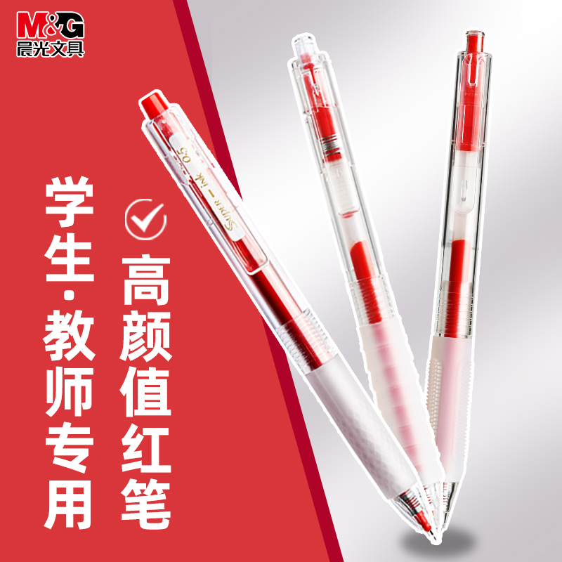 晨光红笔学生专用教师批改作业st按动中性笔红色笔芯云握手笔改错速干大容量大墨王刷题笔按压式水笔碳素替芯