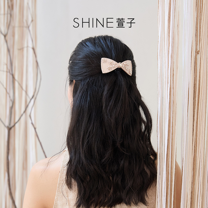 SHINE萱子饰品花影流光系列优雅精致立体蝴蝶结钉珠横夹生日礼物