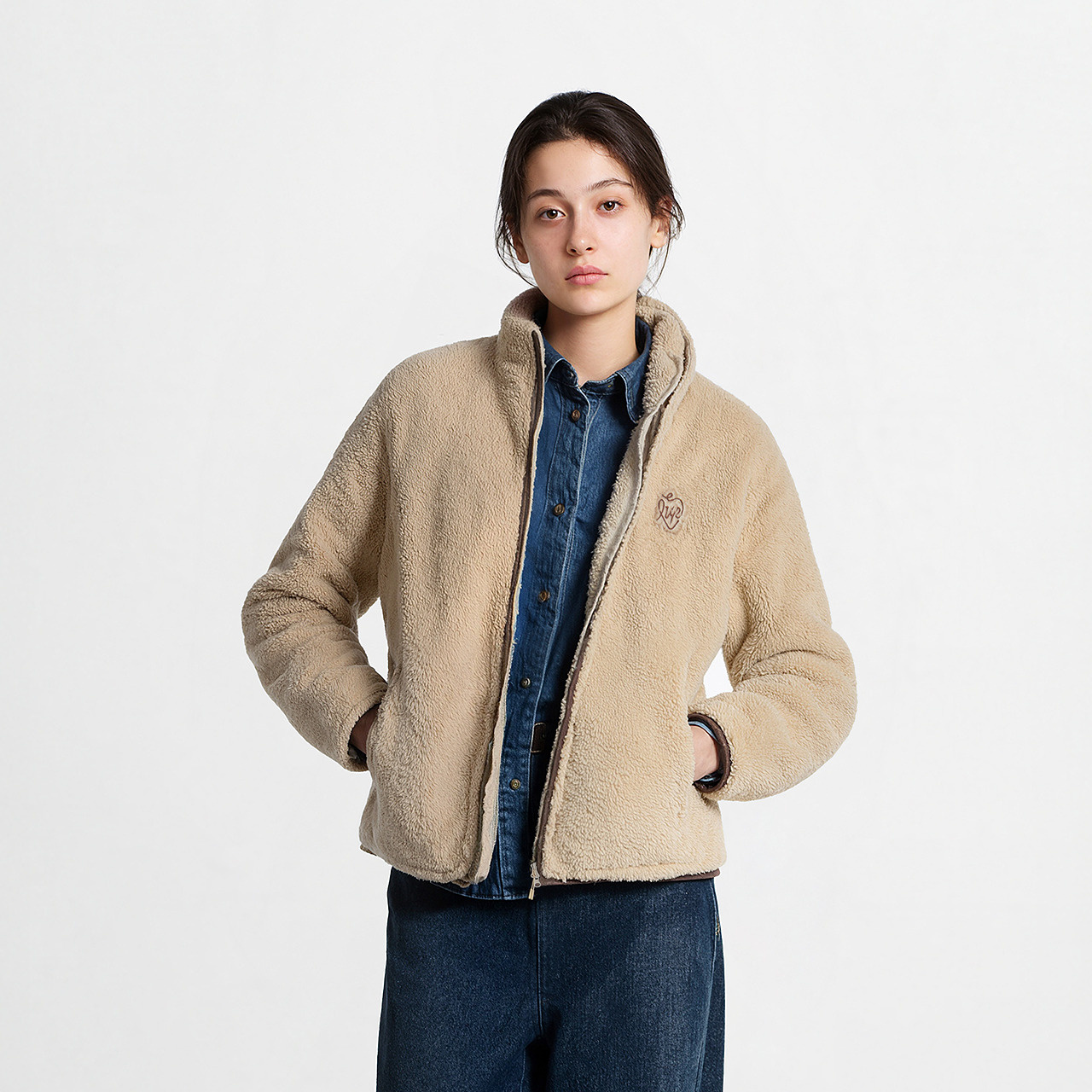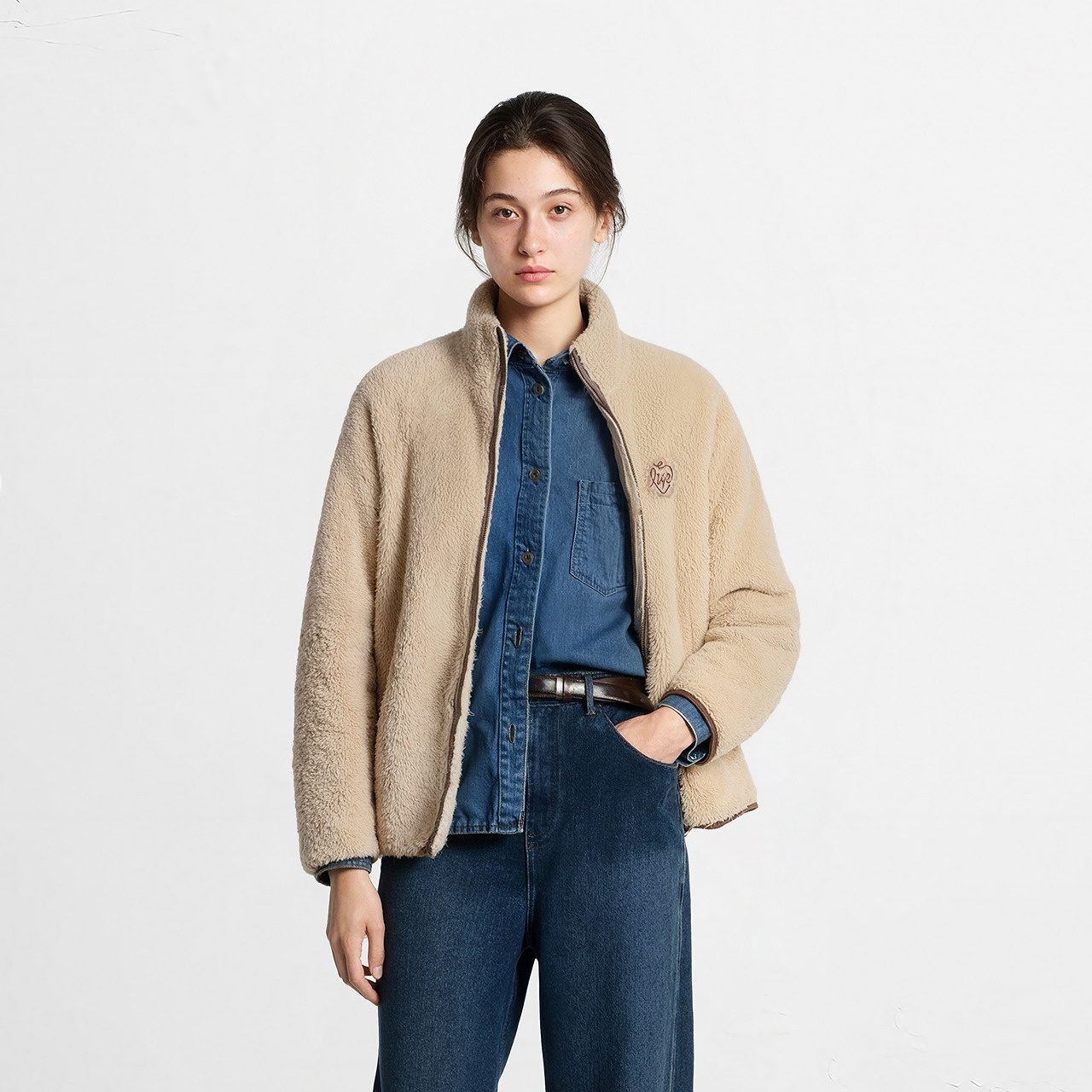 森马外套女插肩袖珊瑚绒仿羊羔毛2025冬季新款立领宽松夹克温柔系
