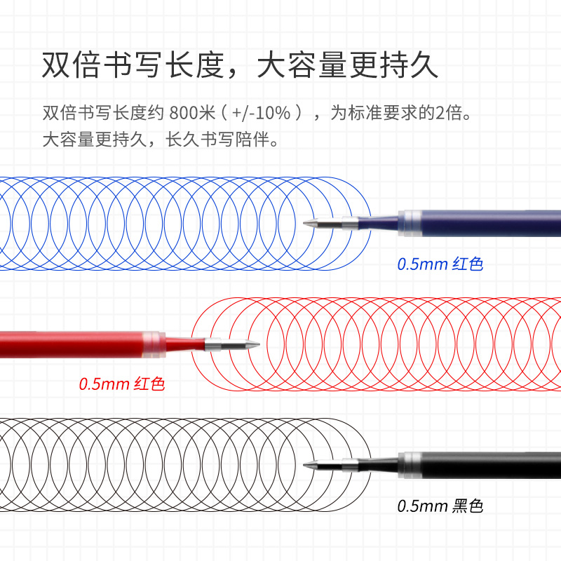 kaco双珠笔芯工艺 书源中性笔菁点路边夜樱专用替芯考试黑色按动水性笔替换芯Kefill学生用签字笔刷题笔0.5mm