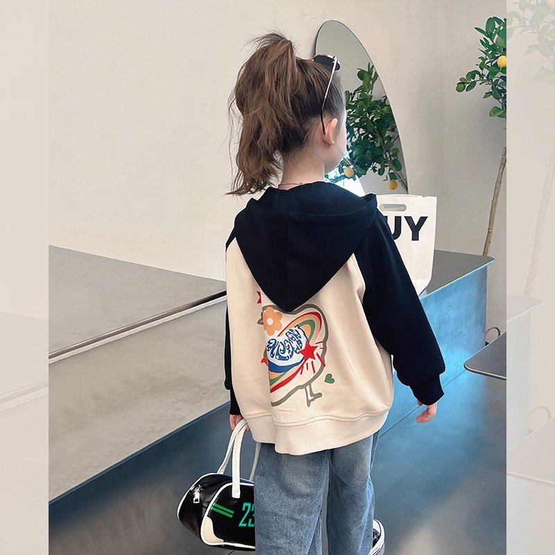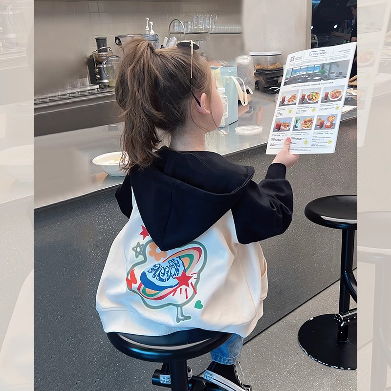 儿童连帽洋气外套女童撞色韩版开衫大童装运动上衣2025春秋新款