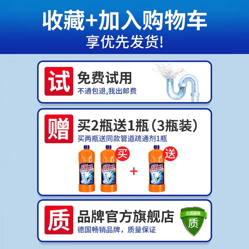 官方管道疏通剂强力溶解通厨房下水道油污神器厕所马桶堵塞疏通液