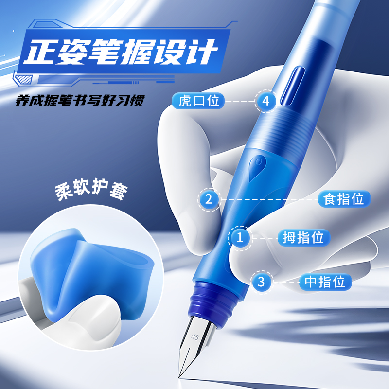 咔巴熊热可擦钢笔小学生用热敏可擦矫姿钢笔男孩晶蓝儿童初学者练字写错即擦笔替换墨囊3年级正姿蓝色摩易檫