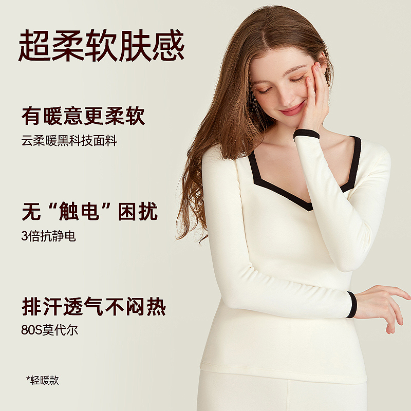 好奇蜜斯德绒保暖内衣女秋衣秋裤加绒加厚发热打底衫秋冬内搭套装