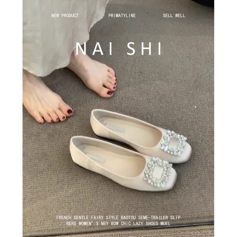 温柔仙女风单鞋2025新款法式晚晚风气质方扣水钻浅口平底通