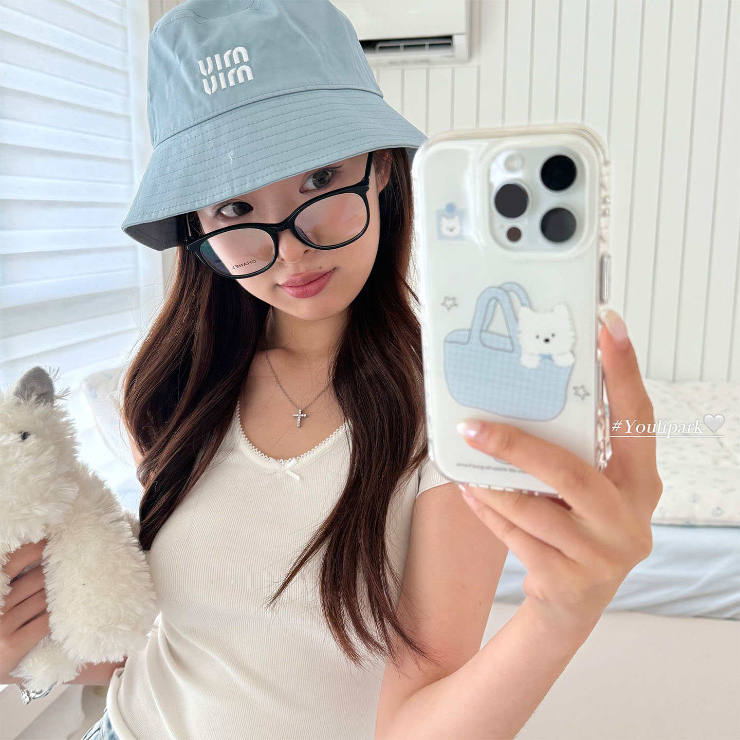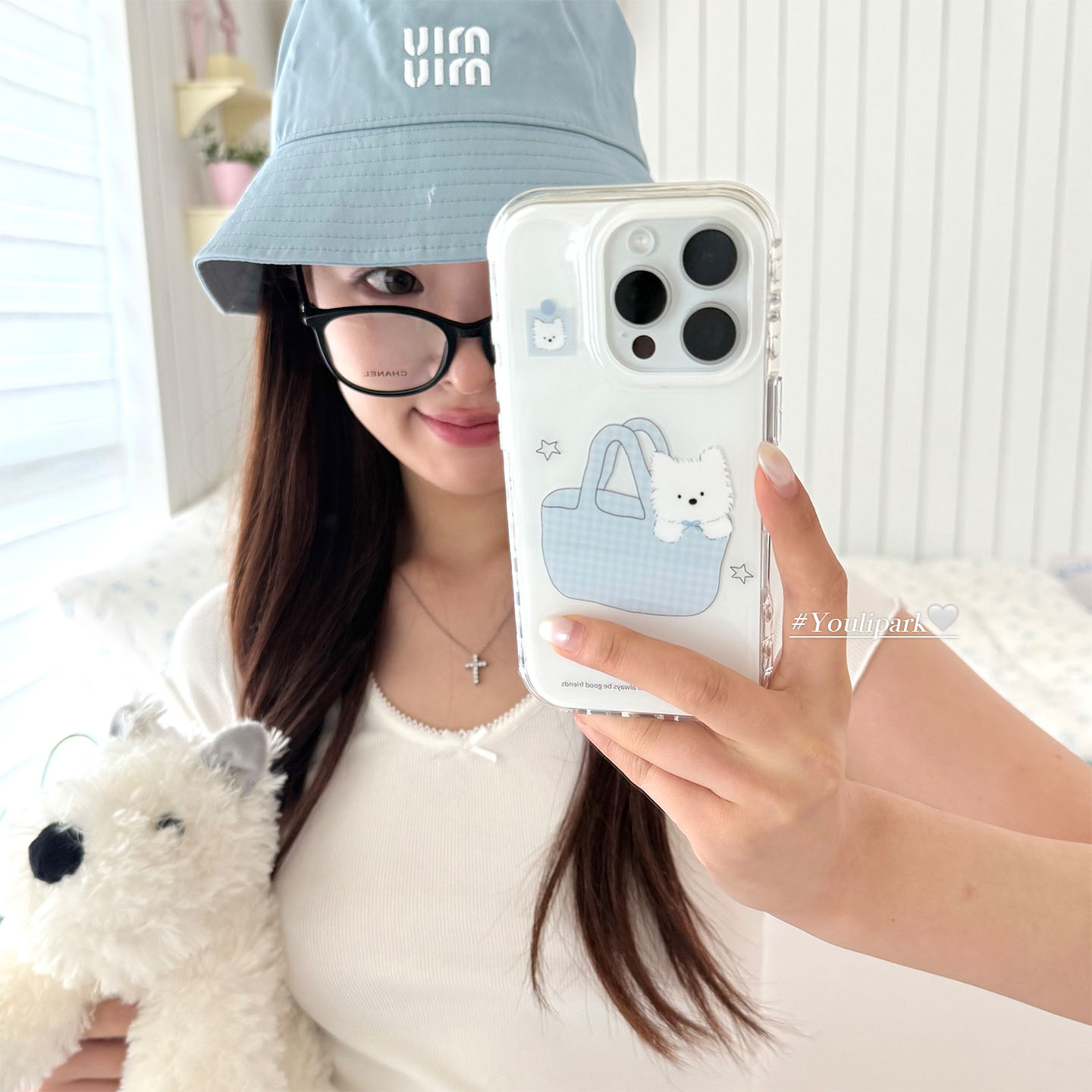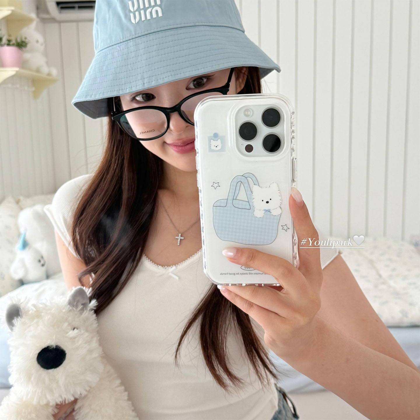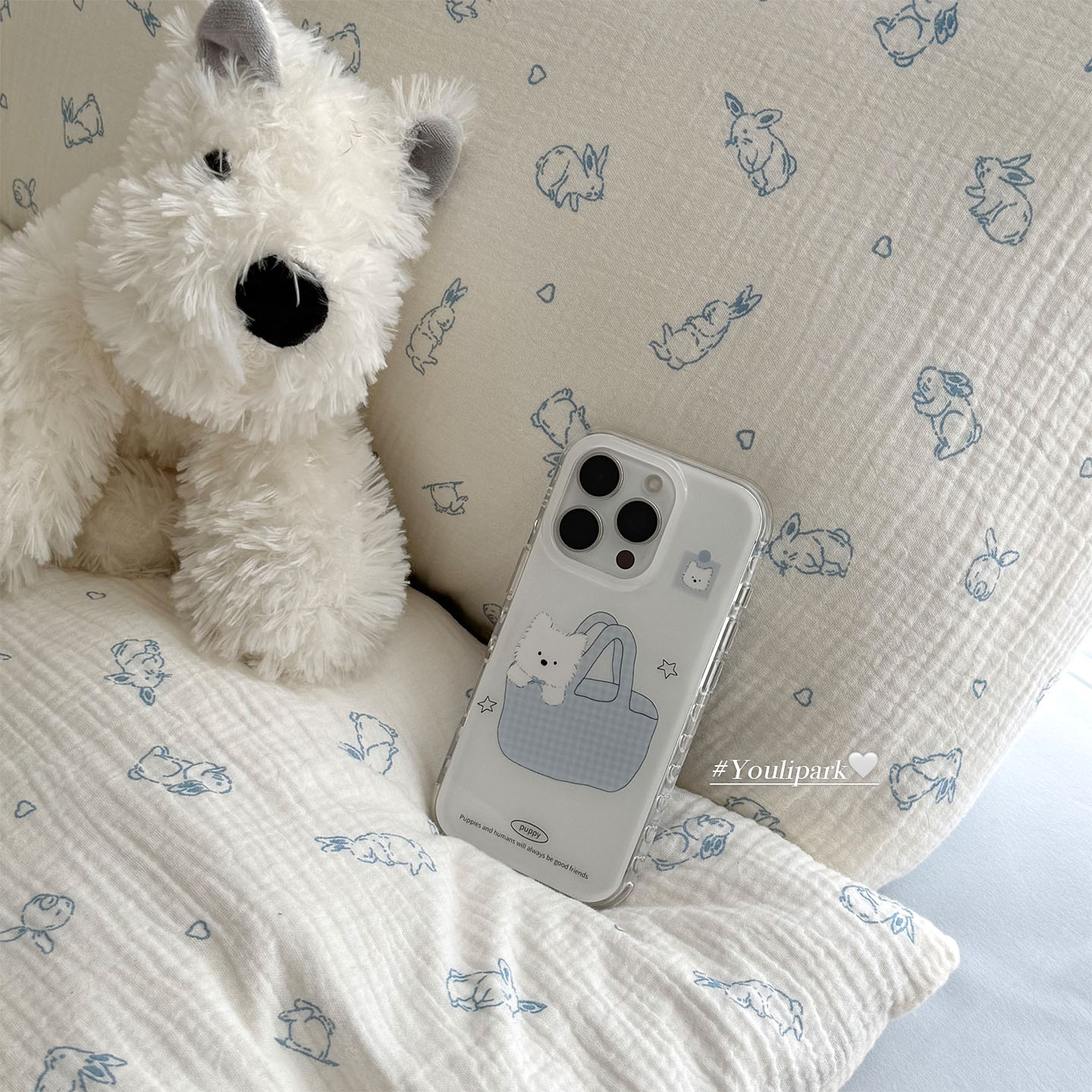 由里公园ins奶呼呼韩系可爱蓝色购物袋小狗15适用17pro苹果17ProMax手机壳iPhone16全包17新款14Promax保护套