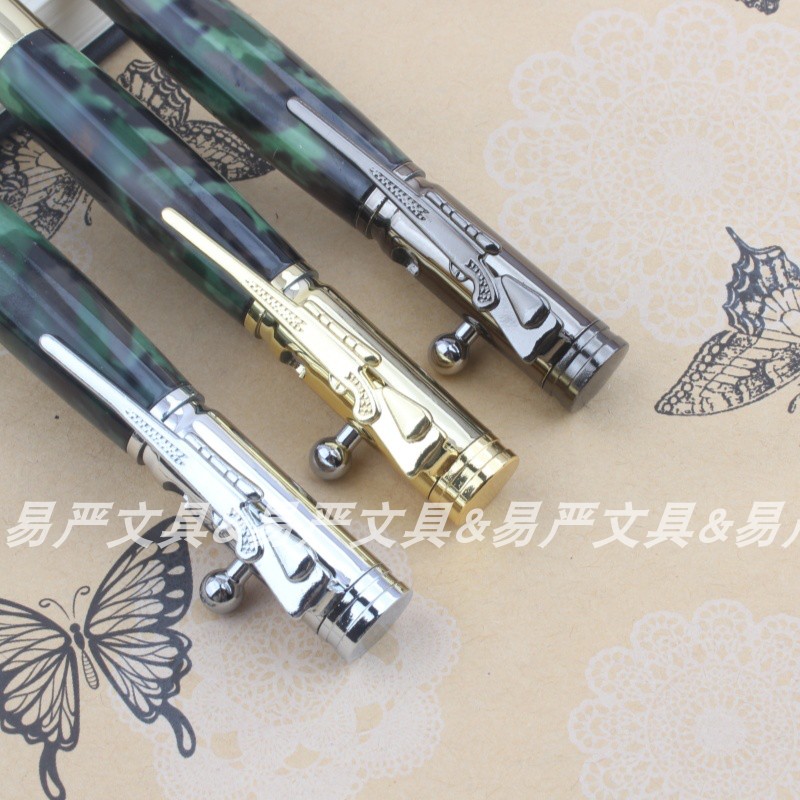 迷彩绿金属笔杆枪栓中性笔军事迷枪型笔夹男士商务书写礼品笔