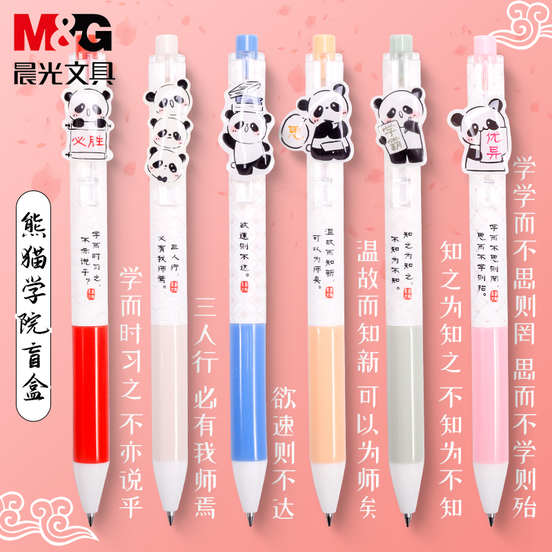 晨光熊猫书院季子曰盲盒笔按动中性笔学生考试专用可爱高颜值签字