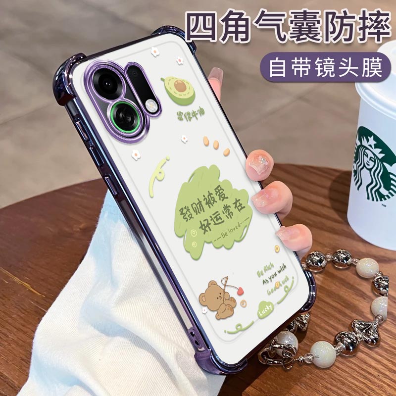 适用OPPOK13Turbo手机壳发财被爱电镀四角防摔K13TurboPro简约硅胶气囊全包高颜值手链女款保护套