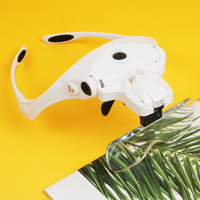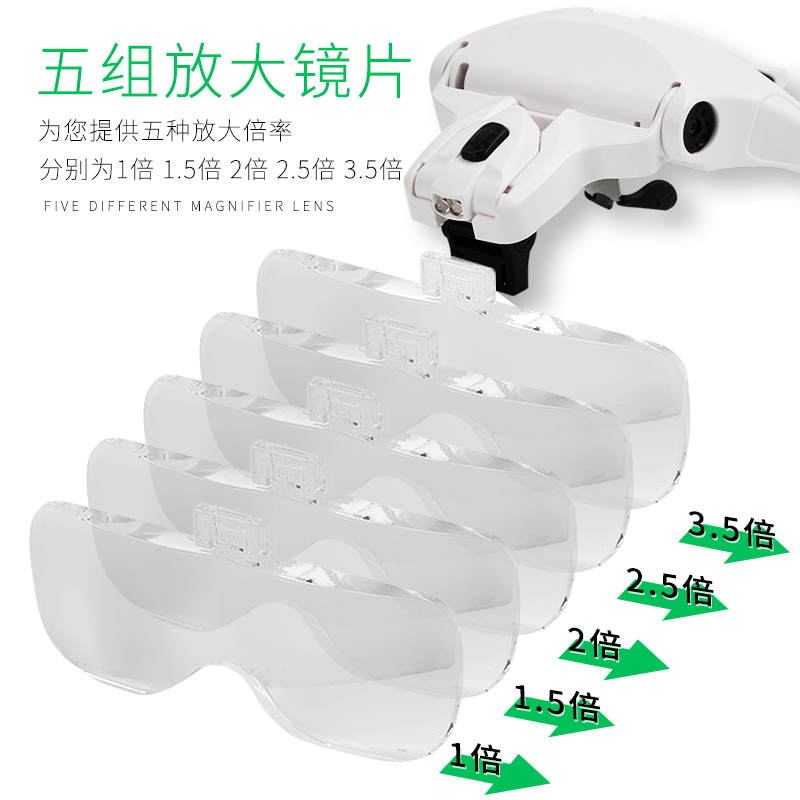 头戴眼镜式放大镜带LED灯可充电轻巧舒适读书看手机维修电子等