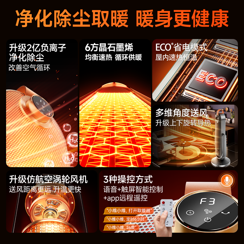 创维负离子俯仰取暖器家用2025新款电暖气石墨烯暖风机加热大面积