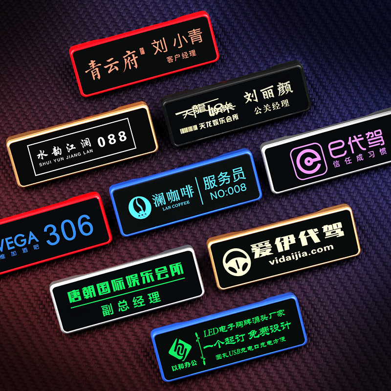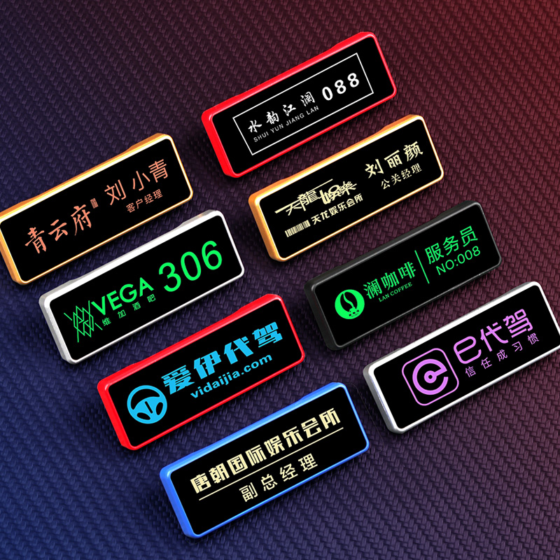 胸牌高端定制led胸牌发光显示屏工牌别针式KTV酒吧服务员代驾电子胸牌定做LOGO员工工号牌上岗工作证制作充电