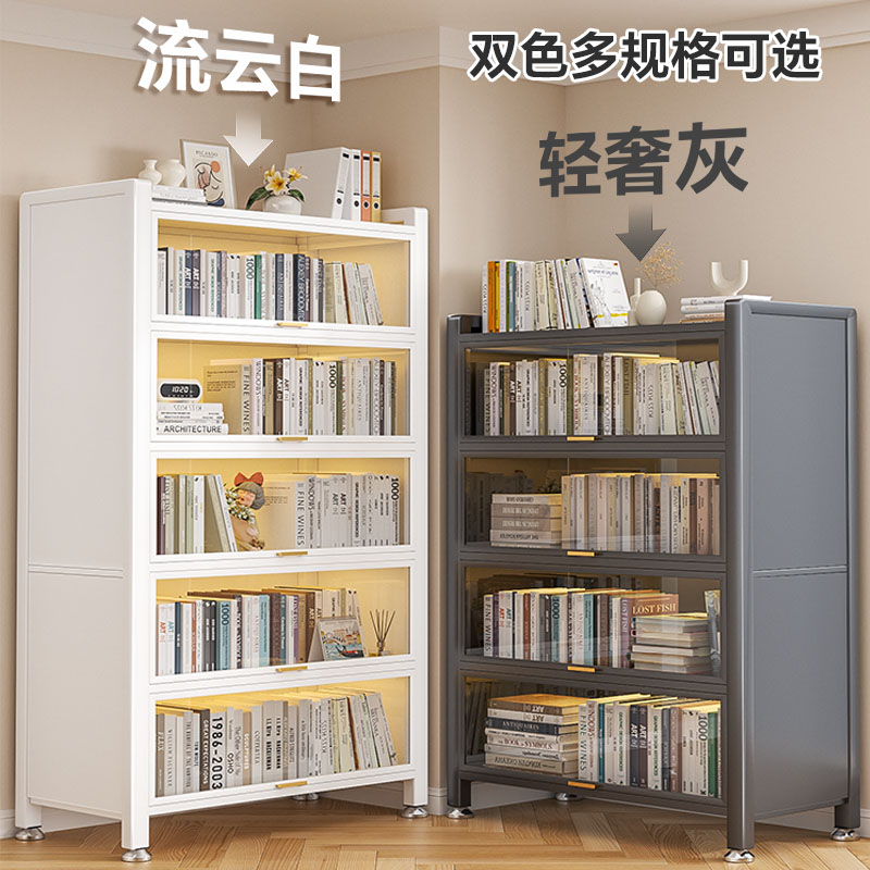钢制书柜儿童书架落地家用客厅亚克力透明防尘门展示柜储物置物架