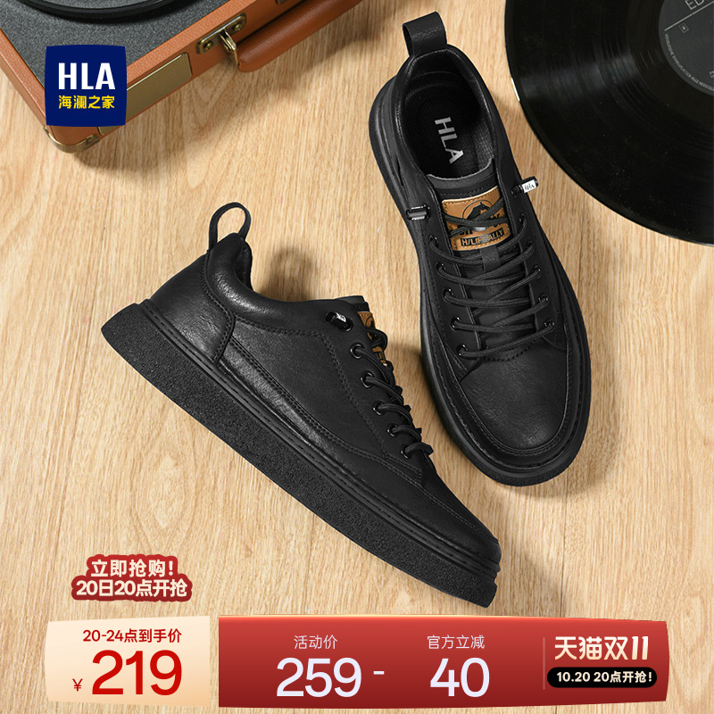 HLA/海澜之家男鞋皮面板鞋休闲皮鞋新款透气秋季英伦风鞋子新款男