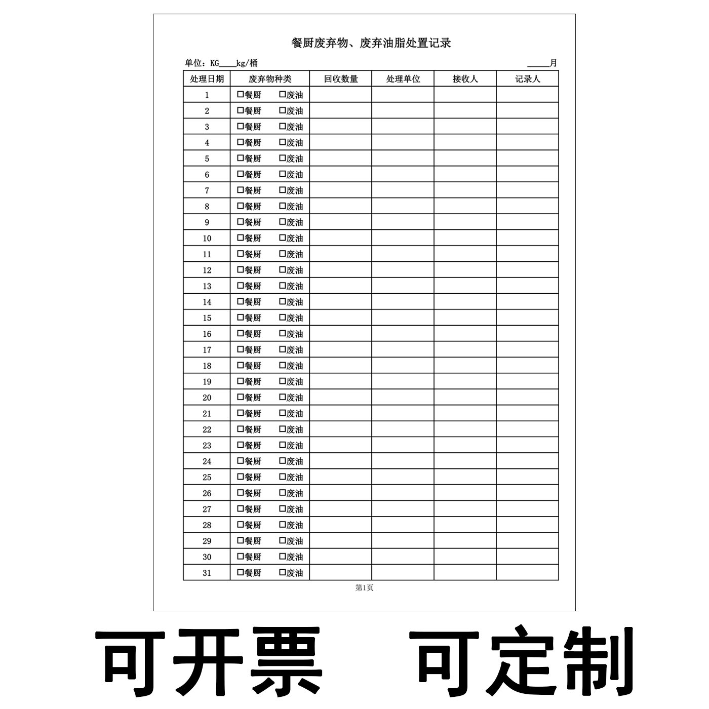 餐饮废弃油脂处理台账本废弃物泔水回收处理登记录表学校食堂酒店