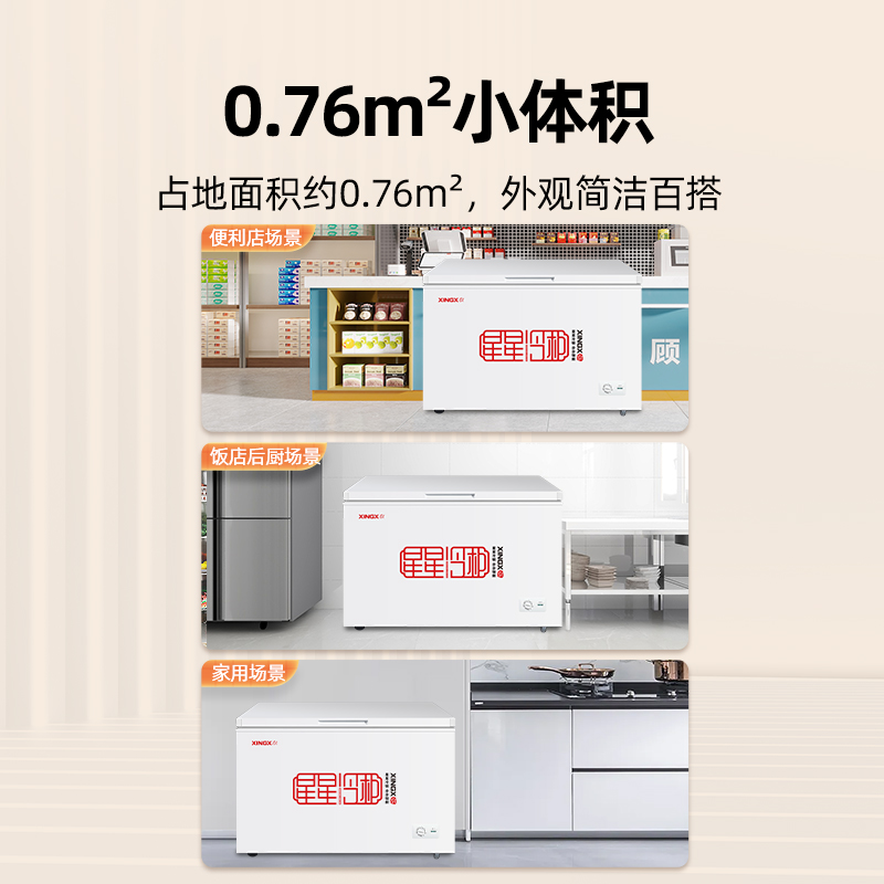 星星冰柜商用冷冻柜355升大容量冷藏冷冻两用卧式家用冰柜