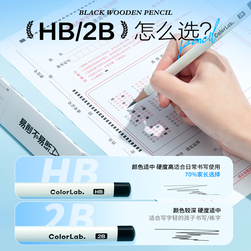 晨光文具小白杆铅笔小学生无毒2b考试专用涂卡笔新一年级二年级2比考试铅笔2h幼儿园HB初学者练字笔高颜值