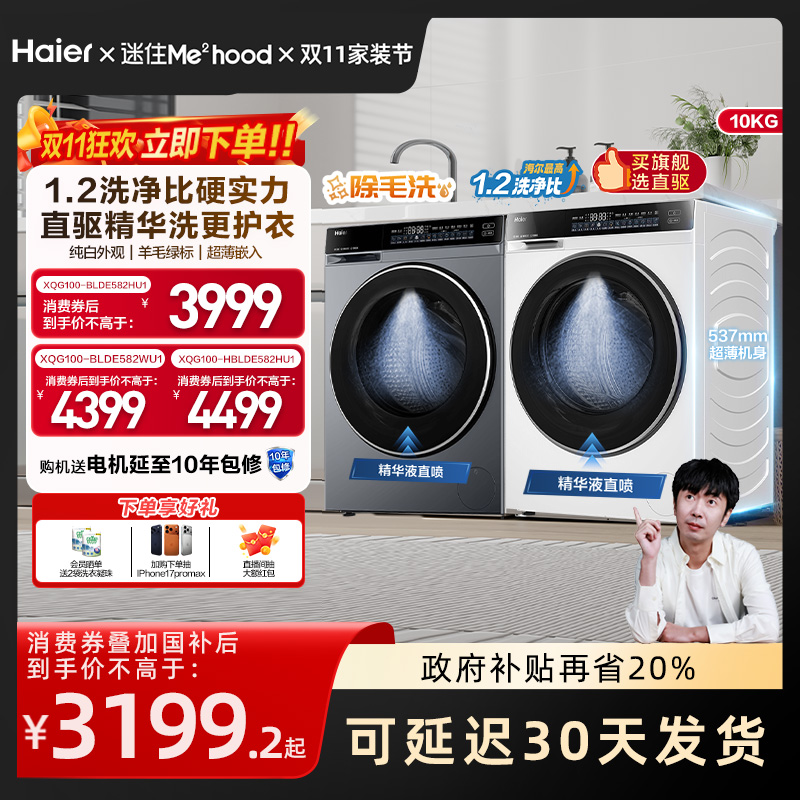 [云溪3.0]海尔582白家用全自动超薄10kg滚筒洗衣机583相似款