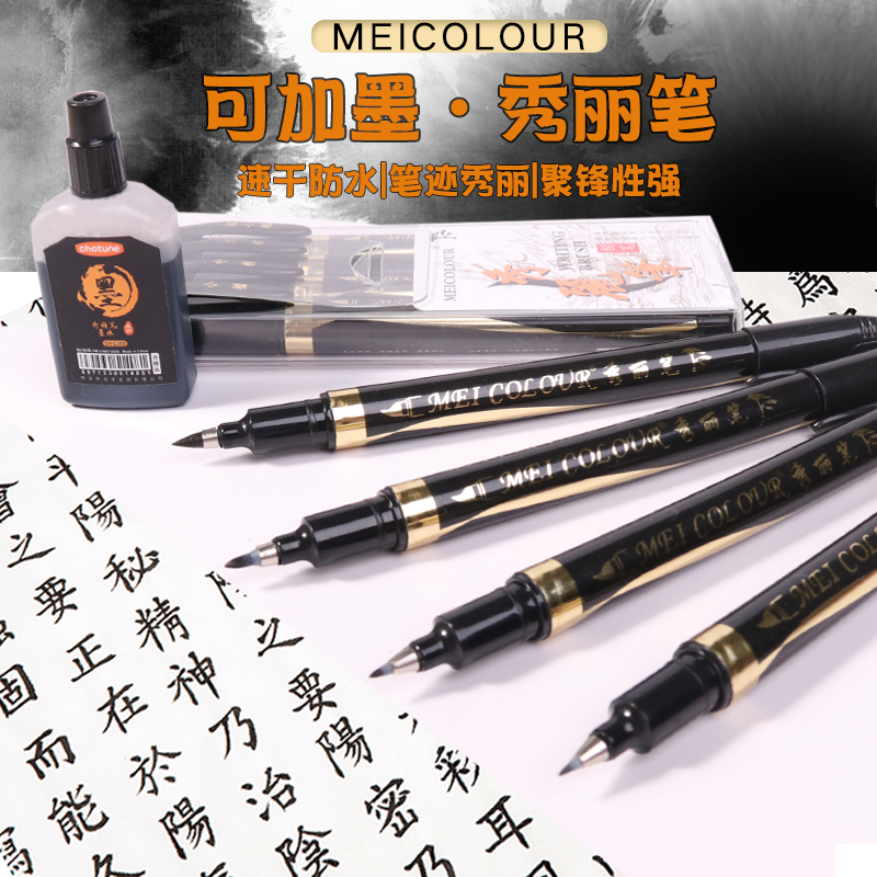 美卡勒秀丽笔软头笔书法练字专用笔美术初学者极小楷中楷大楷字新毛笔抄经小学生软头可加墨自带笔锋的笔
