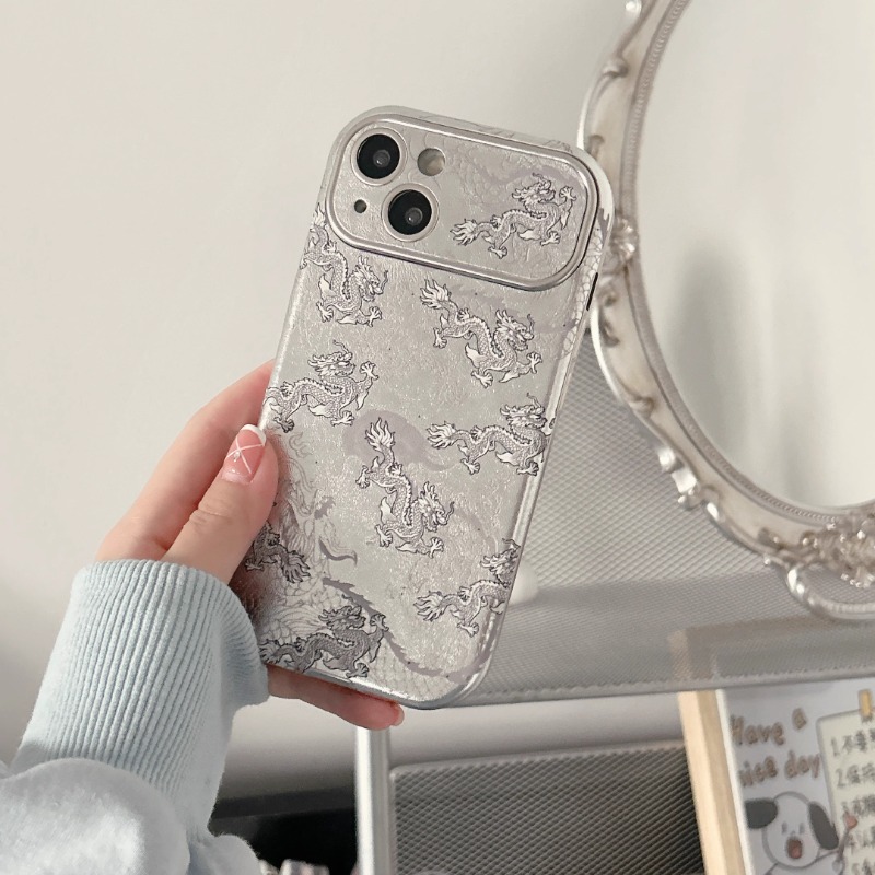 渐层粉色祥云龙纹iPhone15手机保护壳适用苹果14/13Promax软壳12大视窗中国风喜庆红色新款11情侣新年2024潮