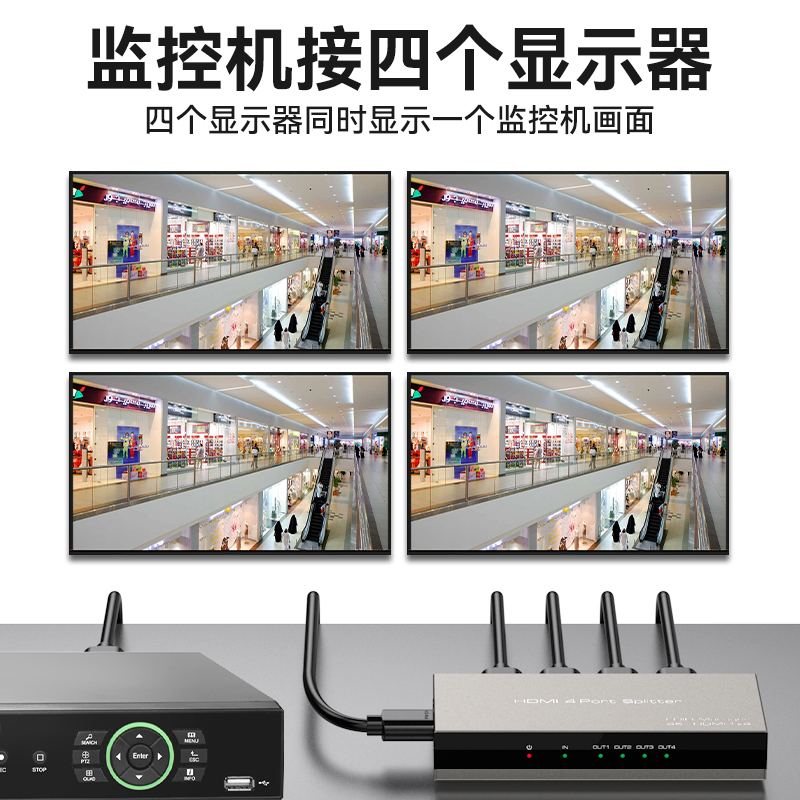Vpfet hdmi分配器一分四4K高清分屏器1进4出音频同步传输一分二分线分频器复制模式同时显示一样的画面1080P