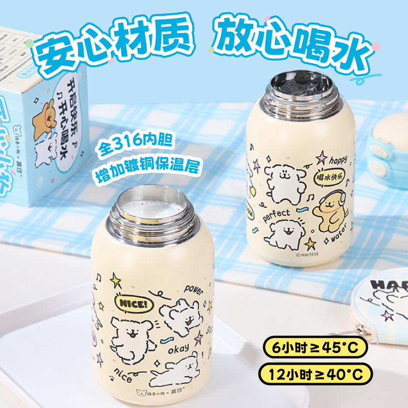 言仓线条小狗联名保温杯保冷儿童便携高颜值情侣女生教师生日礼物